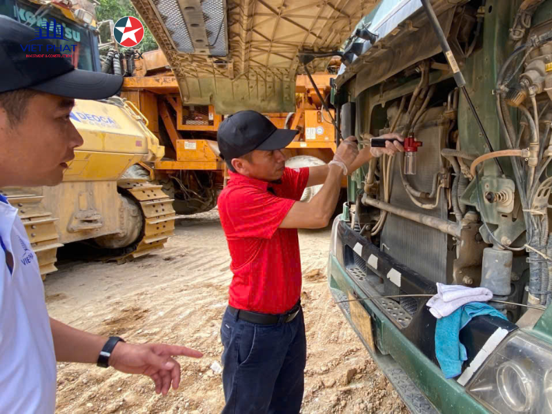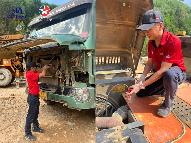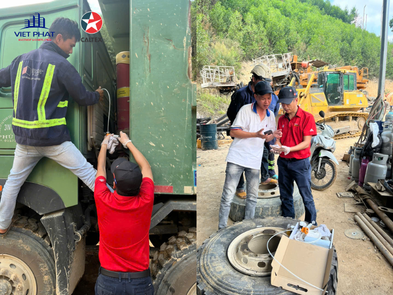 Tại Ban điều hành Gói thầu XL01, đội ngũ kỹ thuật của Caltex và Việt Phát đã phối hợp kiểm tra hiện trạng sử dụng dầu nhớt và mỡ bôi trơn, bao gồm: