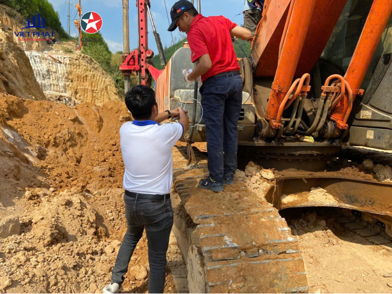 – Kiểm tra thiết bị thi công: tình trạng vận hành, mức tiêu hao dầu, khả năng bôi trơn.