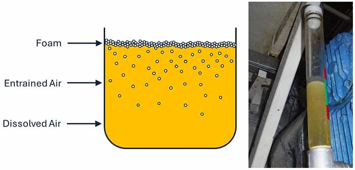 Dầu sẽ tạo thành bọt khi lượng không khí bị cuốn theo đạt 30% theo thể tích. Vì bọt nhẹ hơn dầu nên nó sẽ tích tụ trên đỉnh của thùng chứa dầu hoặc bể chứa, giống như “lớp bọt” trên đỉnh của một chai bia thủ công.